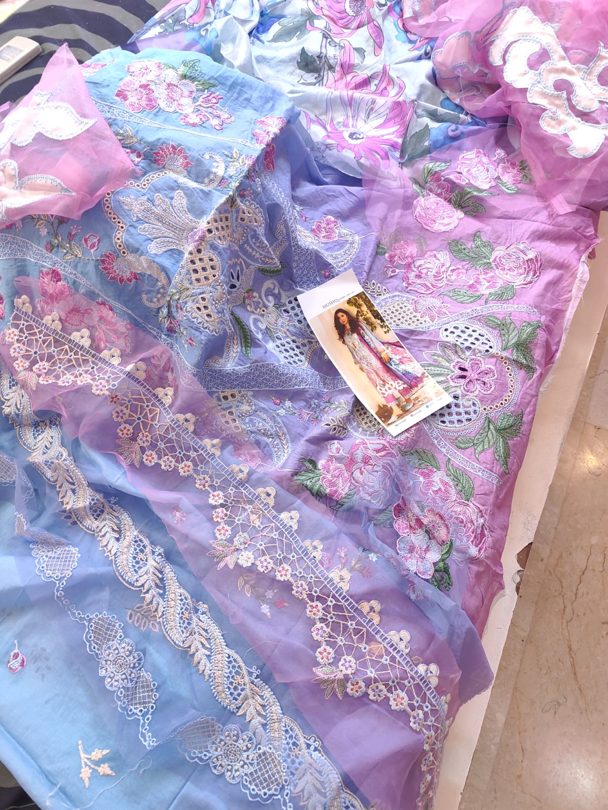Premium lawn embroidered 3pc suit with pure silk/pure chiffon dupatta