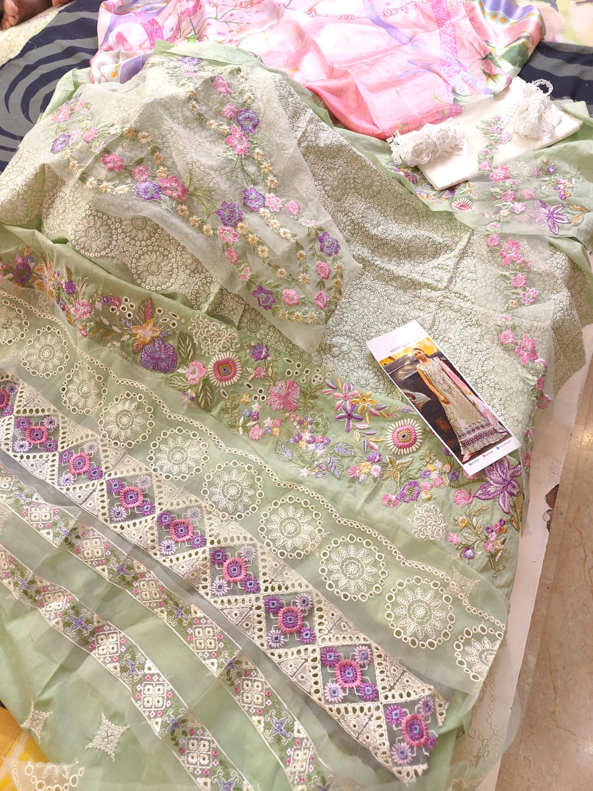 Premium lawn embroidered 3pc suit with pure silk/pure chiffon dupatta